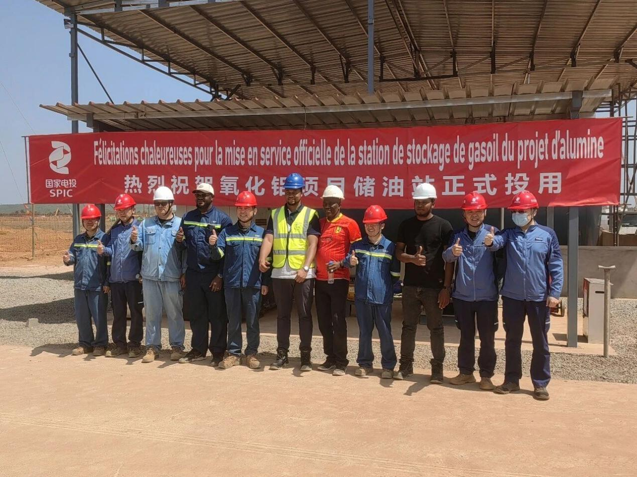 圖為幾內(nèi)亞氧化鋁項(xiàng)目?jī)?chǔ)油站投用儀式現(xiàn)場(chǎng)。