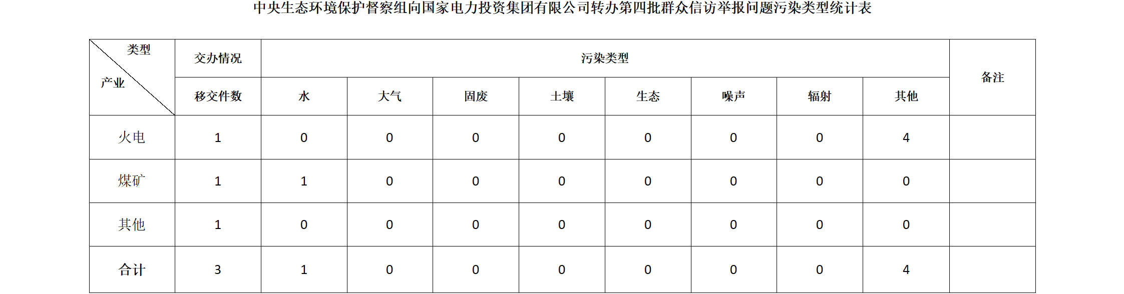 6月4日,中央第八生態(tài)環(huán)境保護督察組向國家電力投資集團有限公司移交第四批群眾信訪舉報件3件,其中來電1件,來信2件。涉及水問題1個,其他問題4個。所有舉報件辦理工作已第一時間進入調(diào)查核實辦理程序,辦理情況將按照相關要求反饋督察組,并及時向社會公開。